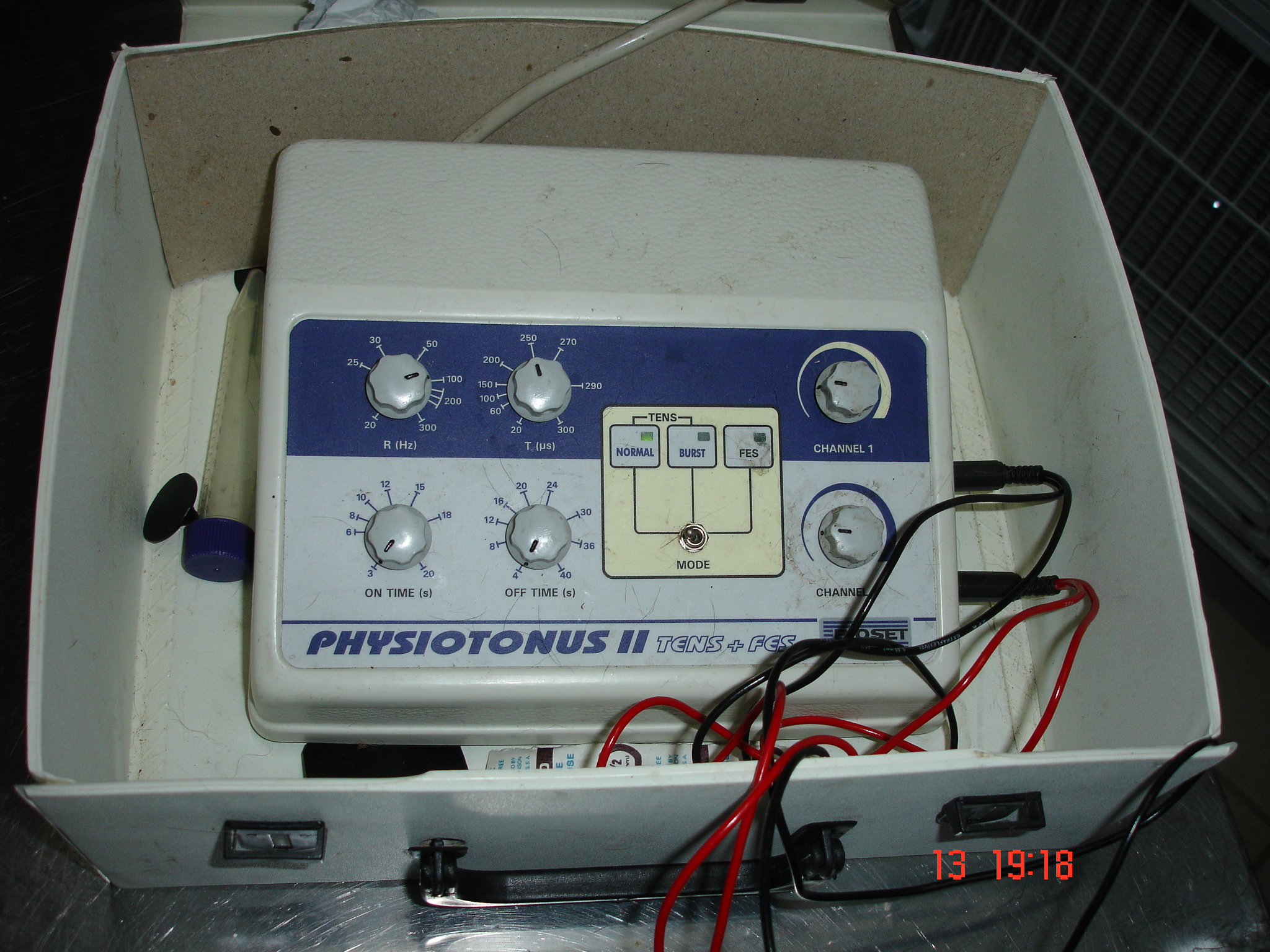 En la siguiente figura, se muestra un equipo de aplicación de electro - laserpuntura de uso frecuente en la clínica acupuntural