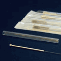 El libro de Nei Ching describe 9 tipos tradicionales de agujas. En la actualidad, para los tratamientos en Pequeños Animales se usan agujas de acero inoxidable filiformes de calibre 25 a 34 y de 1,25 a 5 cm de largo.