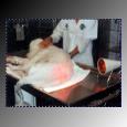 Foto que muestra la maniobra de implante de Semillas de Oro en una cadera canina