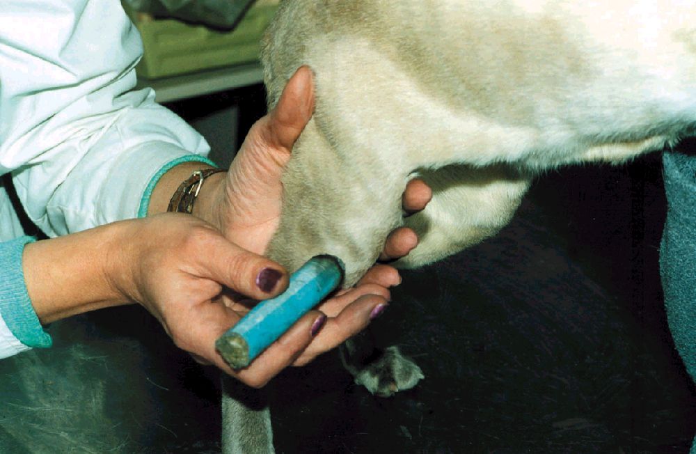 En los Pequeños Animales se puede emplear una aguja hipodérmica calibre 25 y de 1,25 a 2,5 cm de largo. Los ejemplos de sustancias aconsejadas para la inyección incluyen: